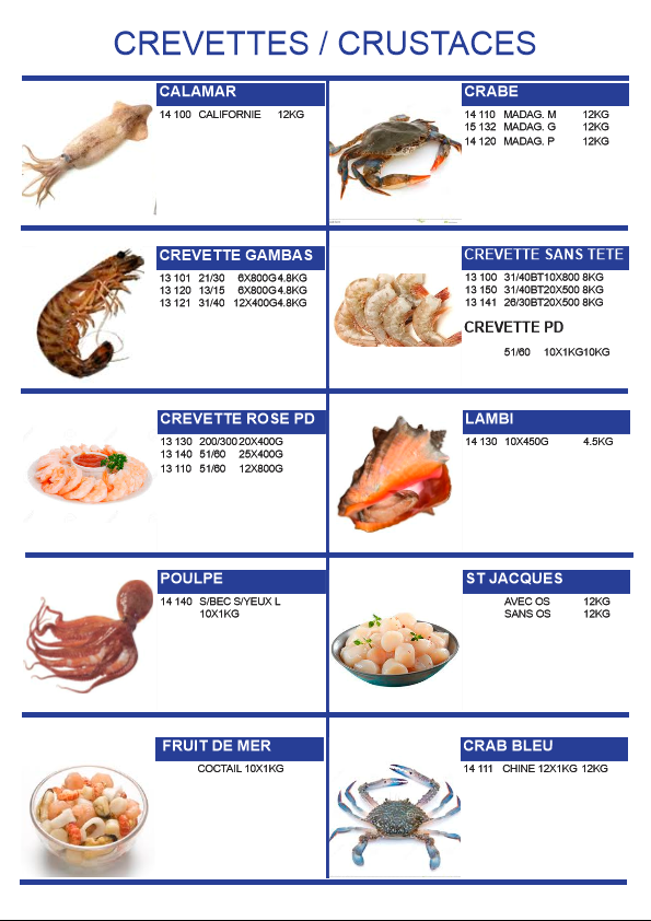 • Crevettes / Crustaces